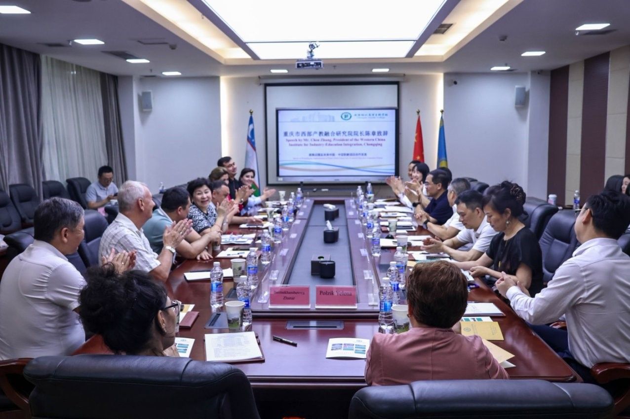On the afternoon of May 20, the delegation of presidents of vocational colleges in Central Asia from Kazakhstan and Uzbekistan visited the school for exchanges accompanied by the Chongqing Western Industry-Education Integration Research Institute. Vice President Li Mingfu, relevant personnel from the Industry-Education Exchange Office, Textile College, and Apparel School attended the exchange symposium.